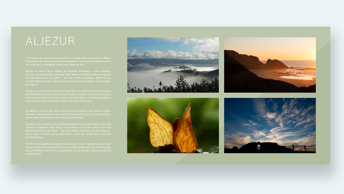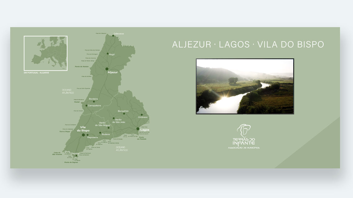 Design gráfico, fotografia, texto, tradução, design de equipamento, design de ambiente e produção de stand institucional para a Associação de Municípios | Terras do Infante. Um projecto 1000olhos em parceria com RO·SE Create